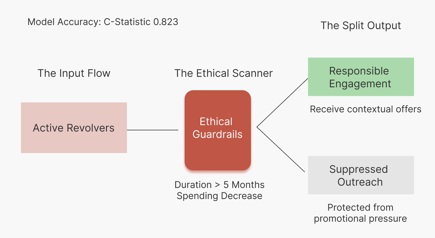 A behavioral segmentation framework that identifies genuine revolving potential while enforcing clear ethical guardrails.