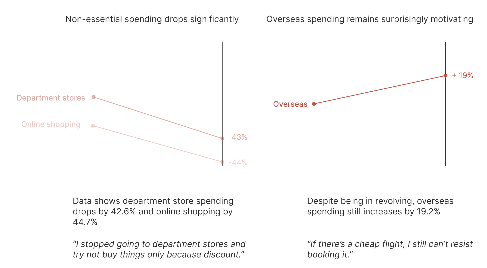 To explore the psychological and situational reasons behind these shifts, we combined credit card data analysis with customer interviews.