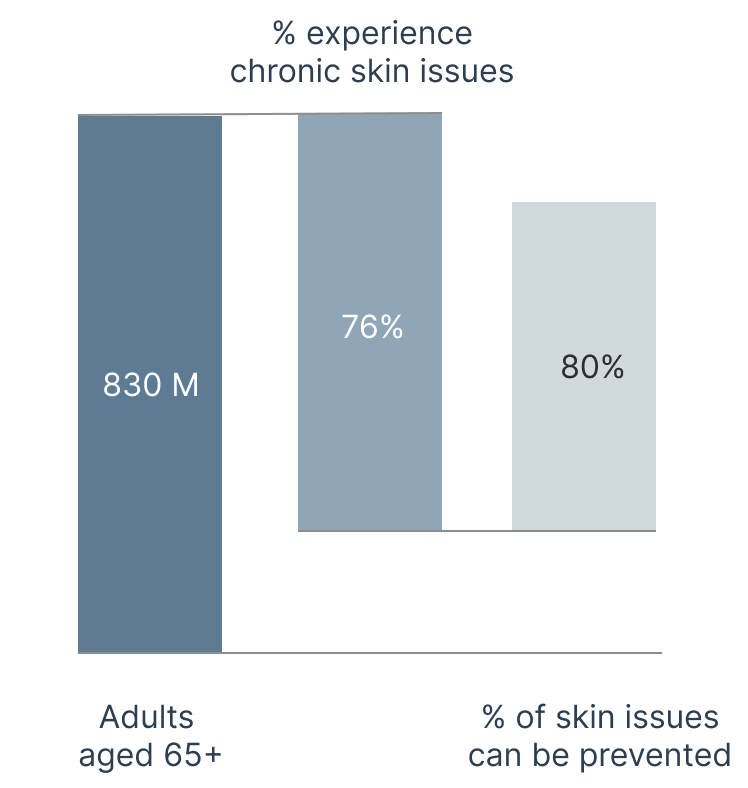 As people age, skin issues become more common and harder to manage. By 2060, the number of adults over 65 is expected to double. Many older adults experience chronic skin problems, and a large portion of these issues could be reduced with consistent care. The gap is not knowledge. Most skincare products are simply not designed for aging bodies.